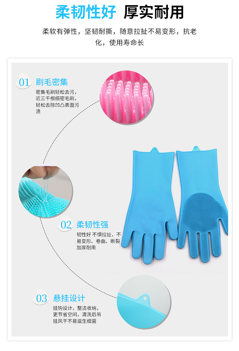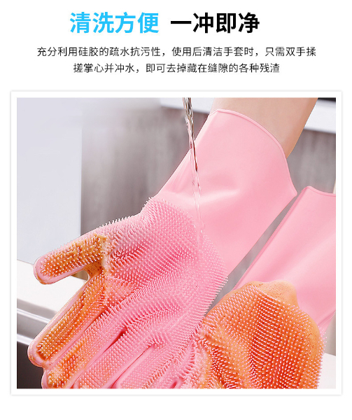 3.手套易清洗徹底不滋生細(xì)菌,這一點(diǎn)是很多清潔用品都做不到的,油脂、醬油、醋、污垢等等都無(wú)法有力附著在硅膠表面,而其他比如鋼絲球、海綿塊、洗碗布等等材質(zhì),都做不到,使用硅膠洗碗手套實(shí)在是讓人放心。