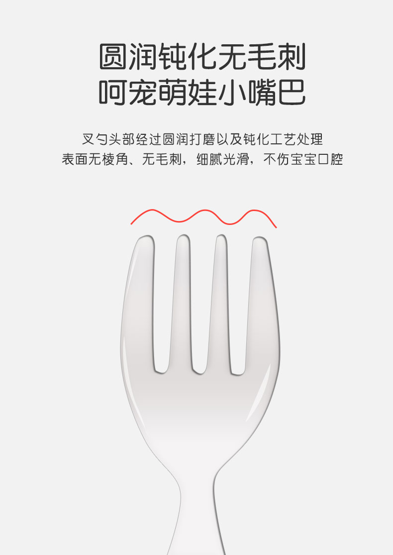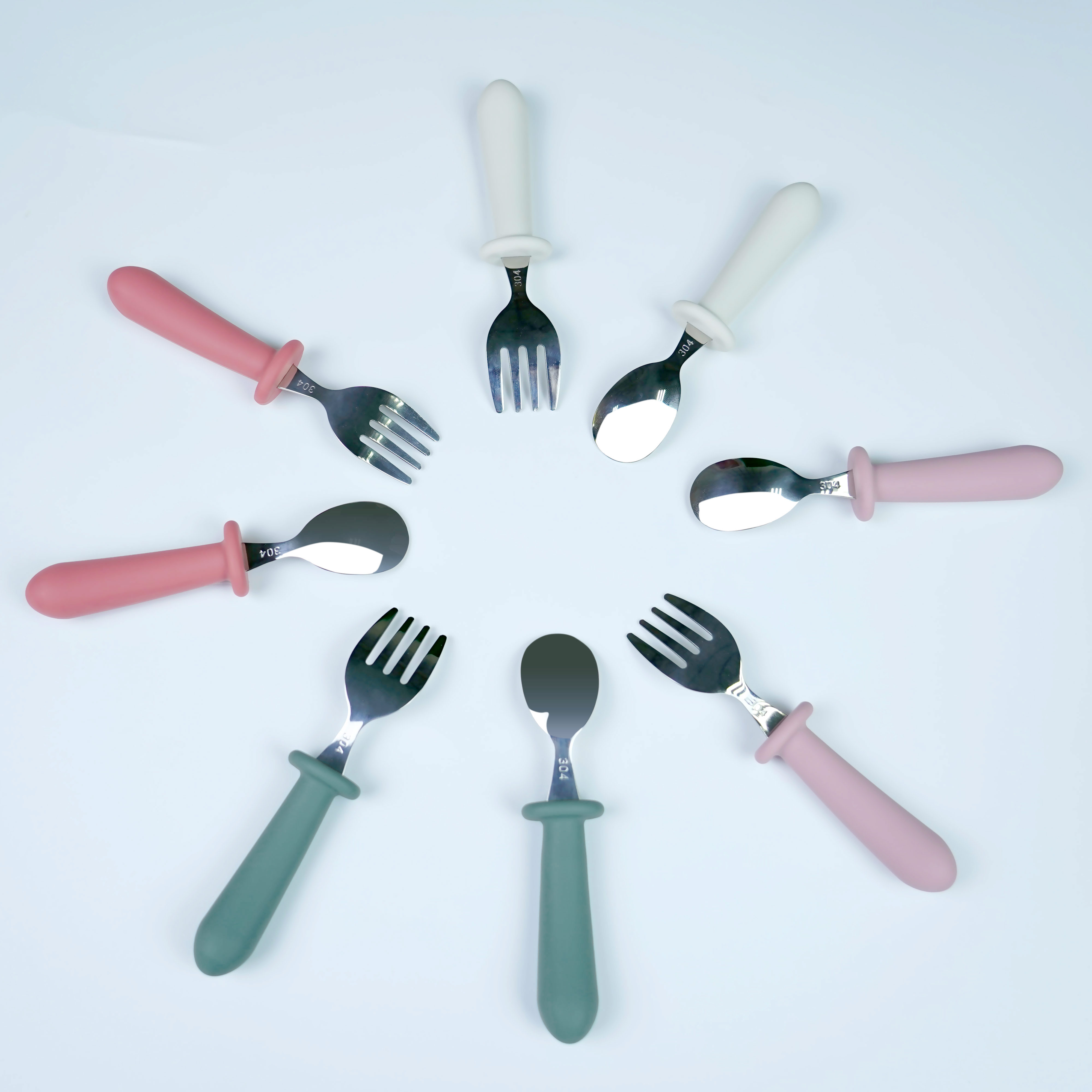 兒童不銹鋼餐勺 硅膠手柄寶寶吃飯短柄叉勺 寶寶叉勺套裝餐具
