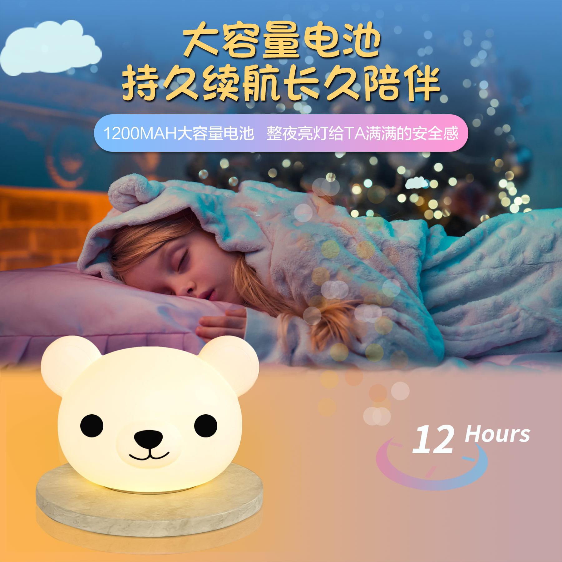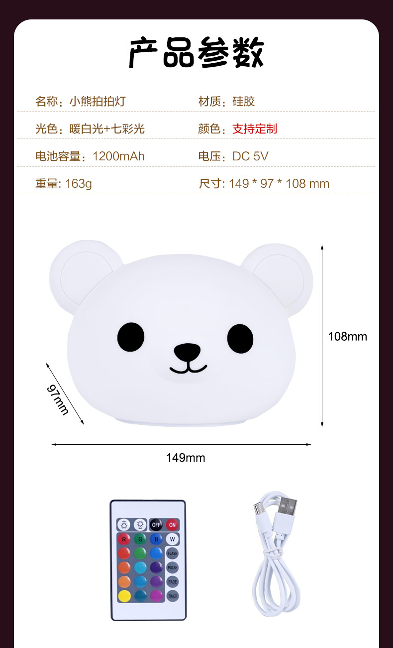 卡通可愛小熊拍拍燈夜 硅膠拍拍燈