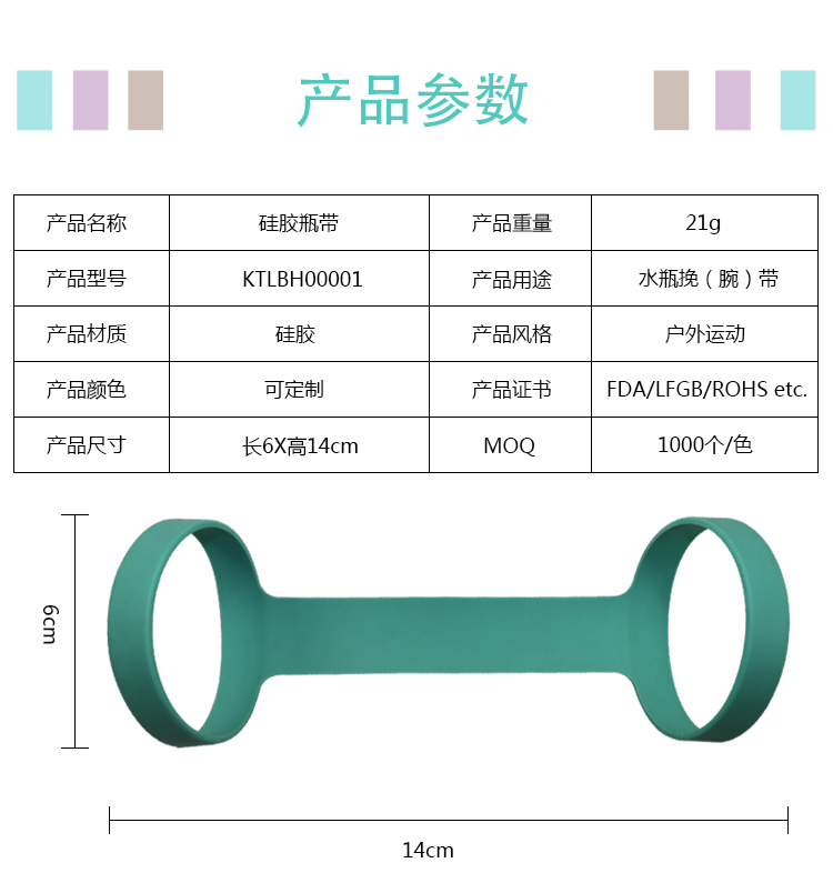 便攜式硅膠瓶帶,采用安全硅膠,無毒副作用。支持產(chǎn)品定制,可適用于各種水瓶。