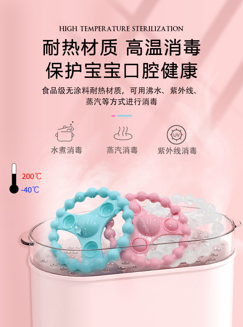 簡介:純凈硅膠磨牙玩具,采用食品級液態(tài)硅膠不含BPA,